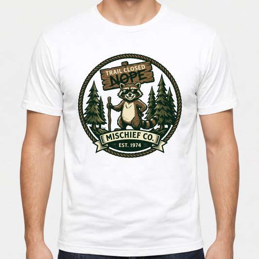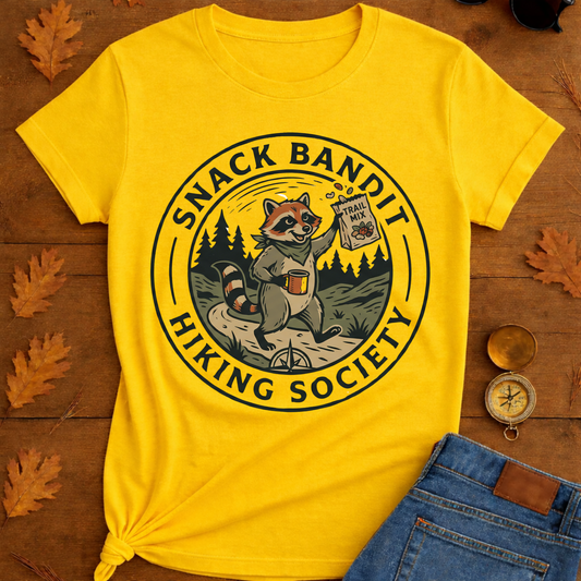 Funny wilderness tees for snack thieves, slow hikers, and campsite troublemakers.