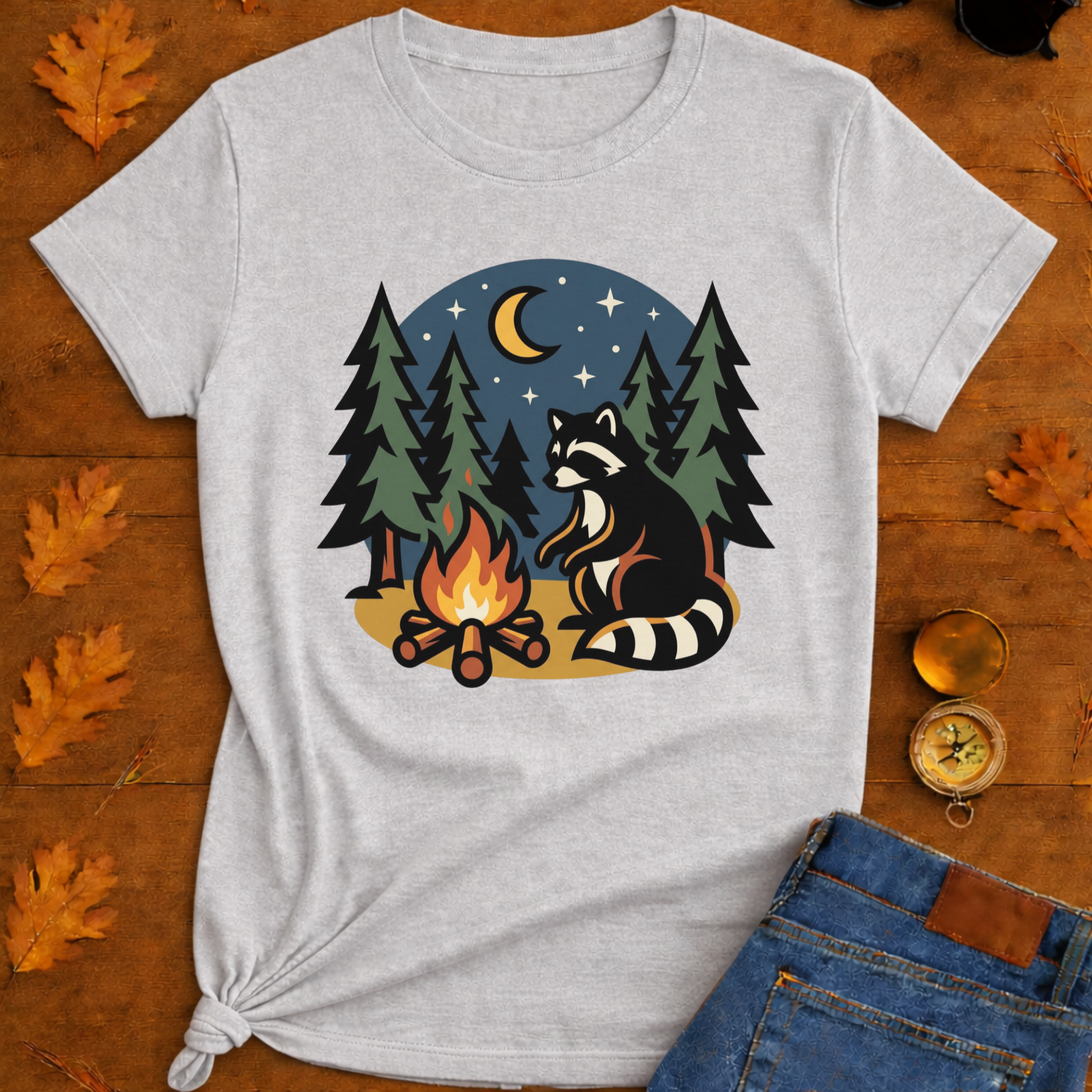 Raccoon Warning Campfire T-Shirt — Funny Camping Graphic Tee
